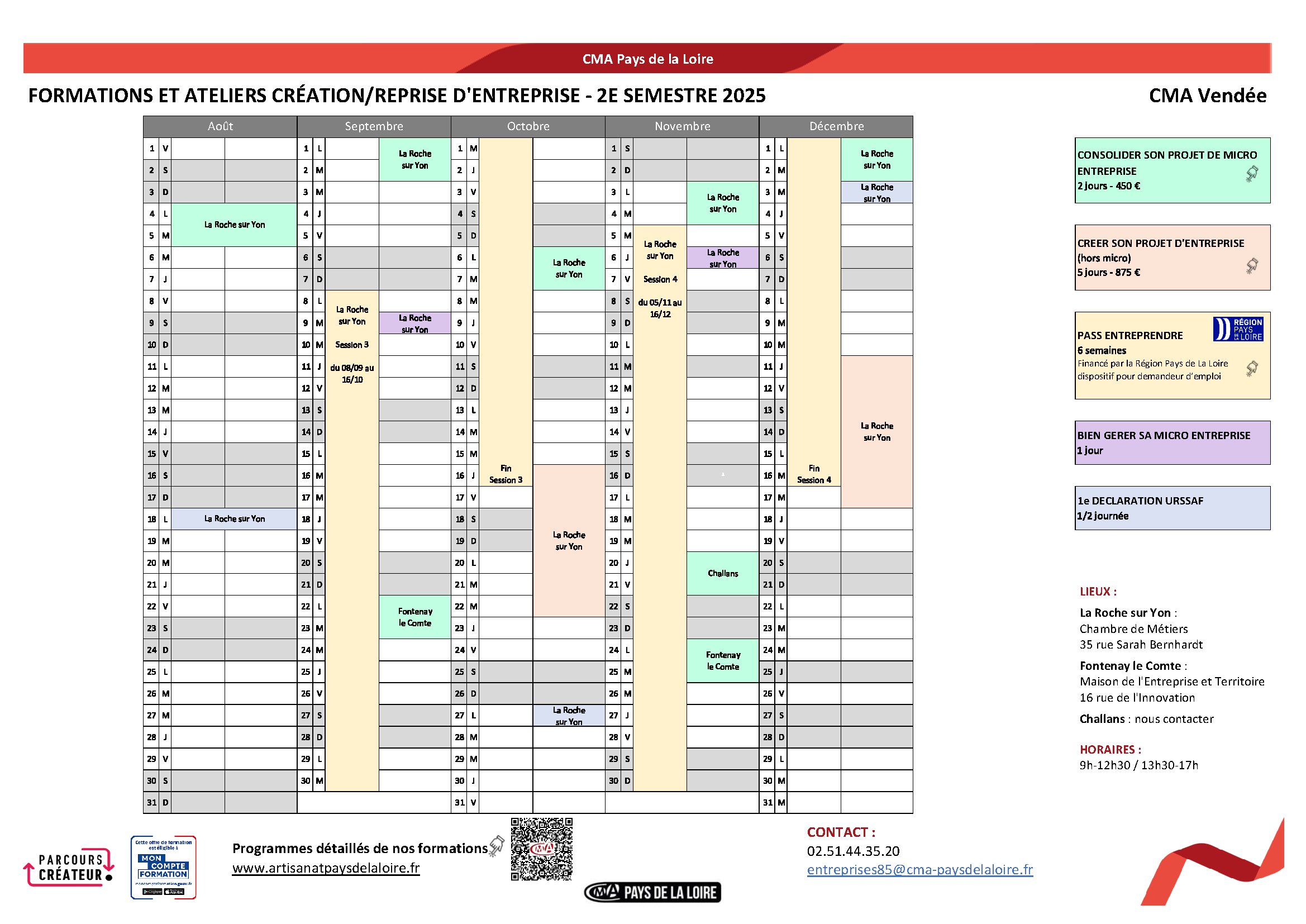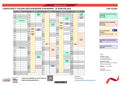 Consultez le calendrier de formations et ateliers création/reprise d'entreprise du 2e semestre 2025 - programme détaillé EN SAVOIR PLUS
